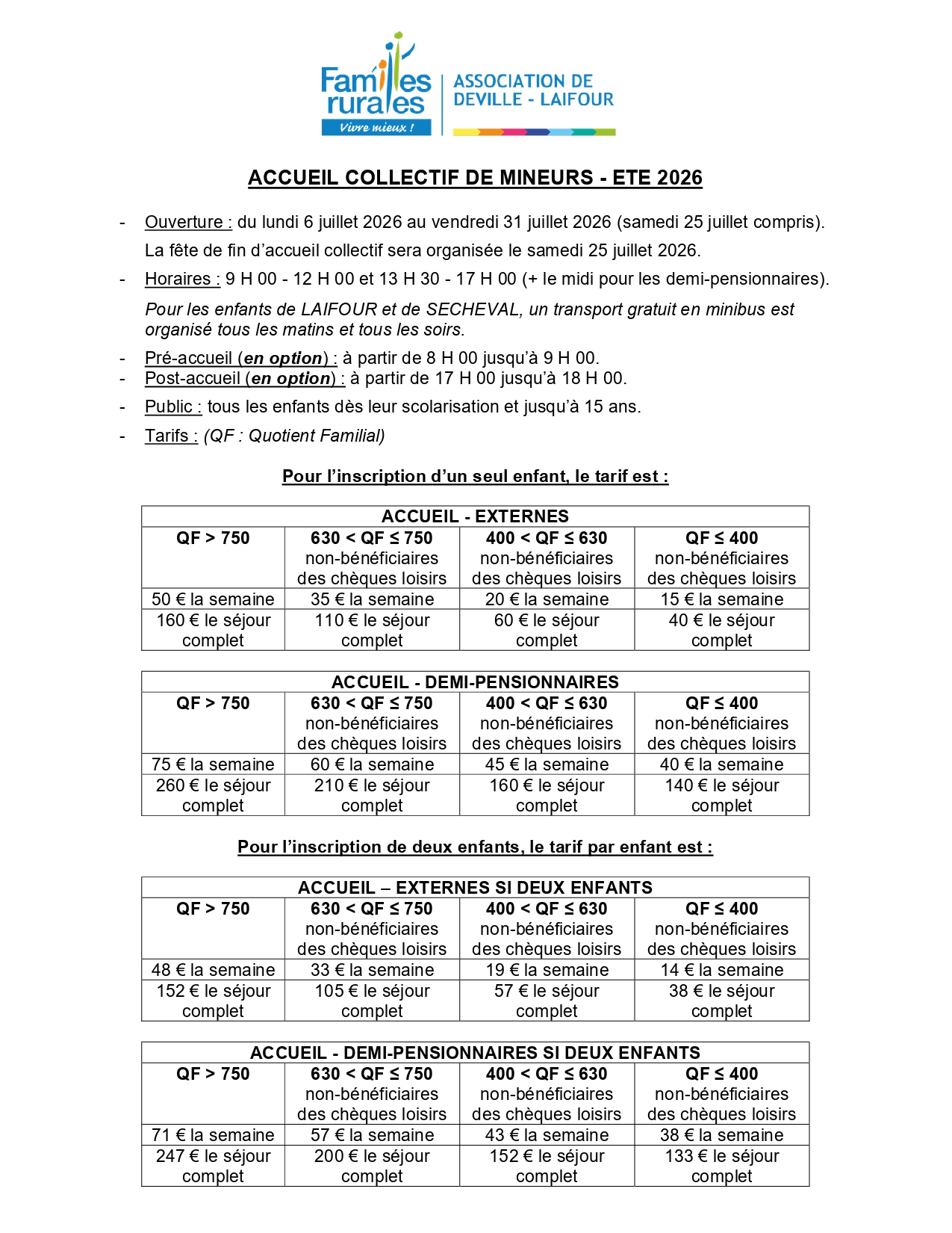 l’Association Familles Rurales de Deville-Laifour